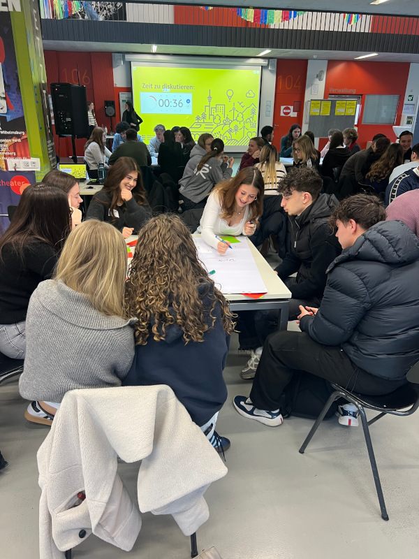 Unsere Kolleginnen Frau Andrea Liebermann und Frau Sandra Göggel sowie Felix Rein von der Arbeitsagentur Sigmaringen zeichneten verantwortlich dafür, dass 19 Ausbildungsbetriebe sich bereit fanden, mit den Schüler:innen in Speeddatingmanier auf Tuchfühlung zu gehen. Dies bot den jungen Menschen die Chance, bereits jetzt die Fühler nach potenziellen Ausbildungen auszustrecken und die Betriebe kurz kennenzulernen.