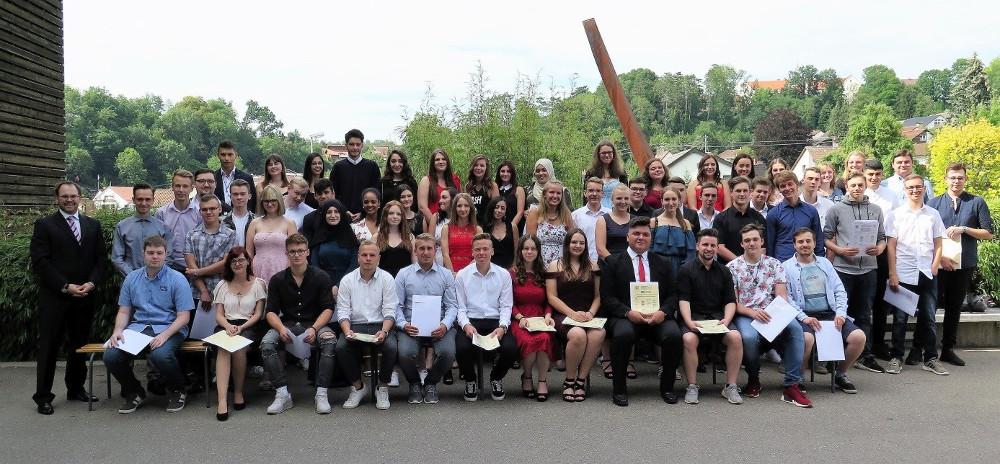 Vor versammelter Schülerschaft verabschiedeten die SMV-Vorsitzenden der Ludwig-Erhard-Schule Rebekka Lück und Leonie Marek die langjährigen Mitglieder des Lehrerkollegiums Elisabeth Lehmann-Zschornack, Albin Bleicher sowie Hans-Peter Schäfer mit einem Dank für ihr Engagement und allen guten Wünschen für den Ruhestand.