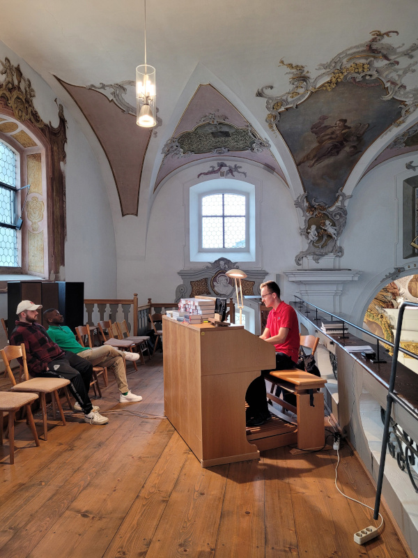 Nach dem Aufenthalt in dem Unternehmen führte Florian Brugger, selber Auszubildender bei der Firma Bix, im Rahmen einer Stadtführung seine Klassenkamerad/-innen stolz durch seine Heimatstadt. Im Zimmernschloss erklärte er ihnen die Geschichte Meßkirchs und was es mit den Grafen von Zimmern auf sich hat. In der St. Martinskirche durfte die Gruppe sogar einen Blick von der Orgelempore aus in das Kirchenschiff werfen. Brugger, gleichzeitig Organist in Meßkirch, wurde daraufhin von seinen Klassenkamerad/-innen aufgefordert, noch ein Stück auf der Orgel vorzuspielen. Außerhalb der Stadtpfarrkirche ging Brugger auf die berühmten Meßkircher Persönlichkeiten Conradin Kreutzer, Dr. Conrad Gröber und Martin Heidegger ein.